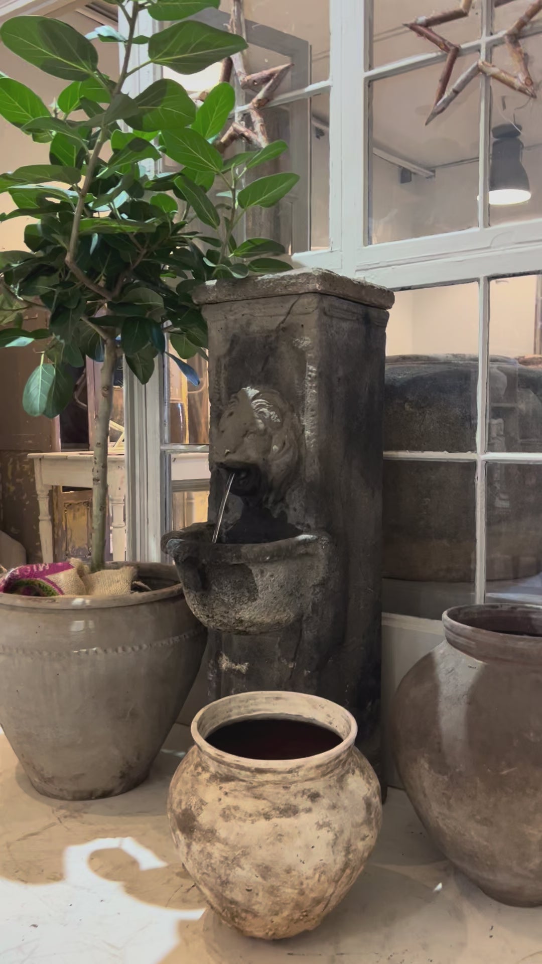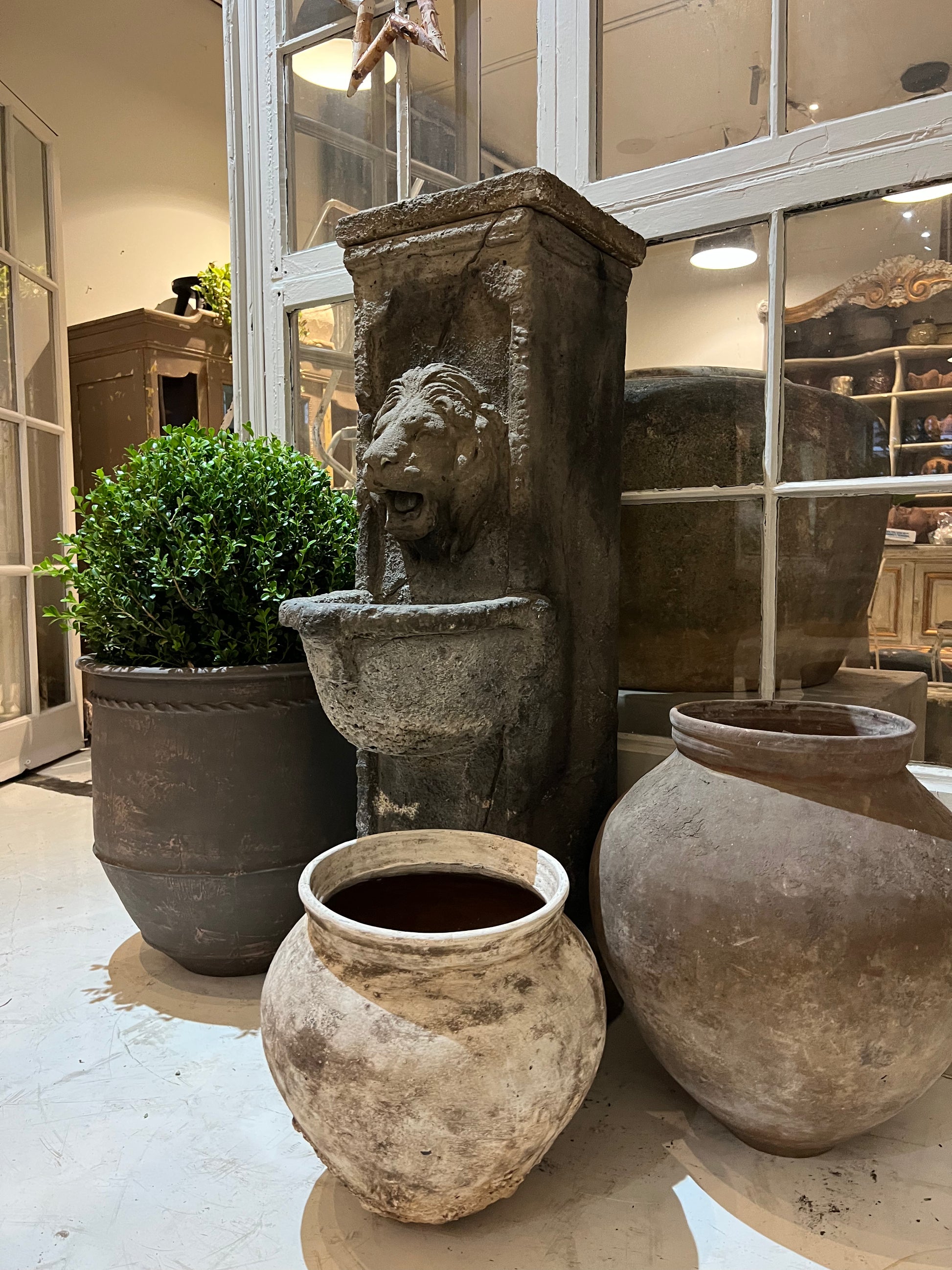 Lion fountain, cast stone